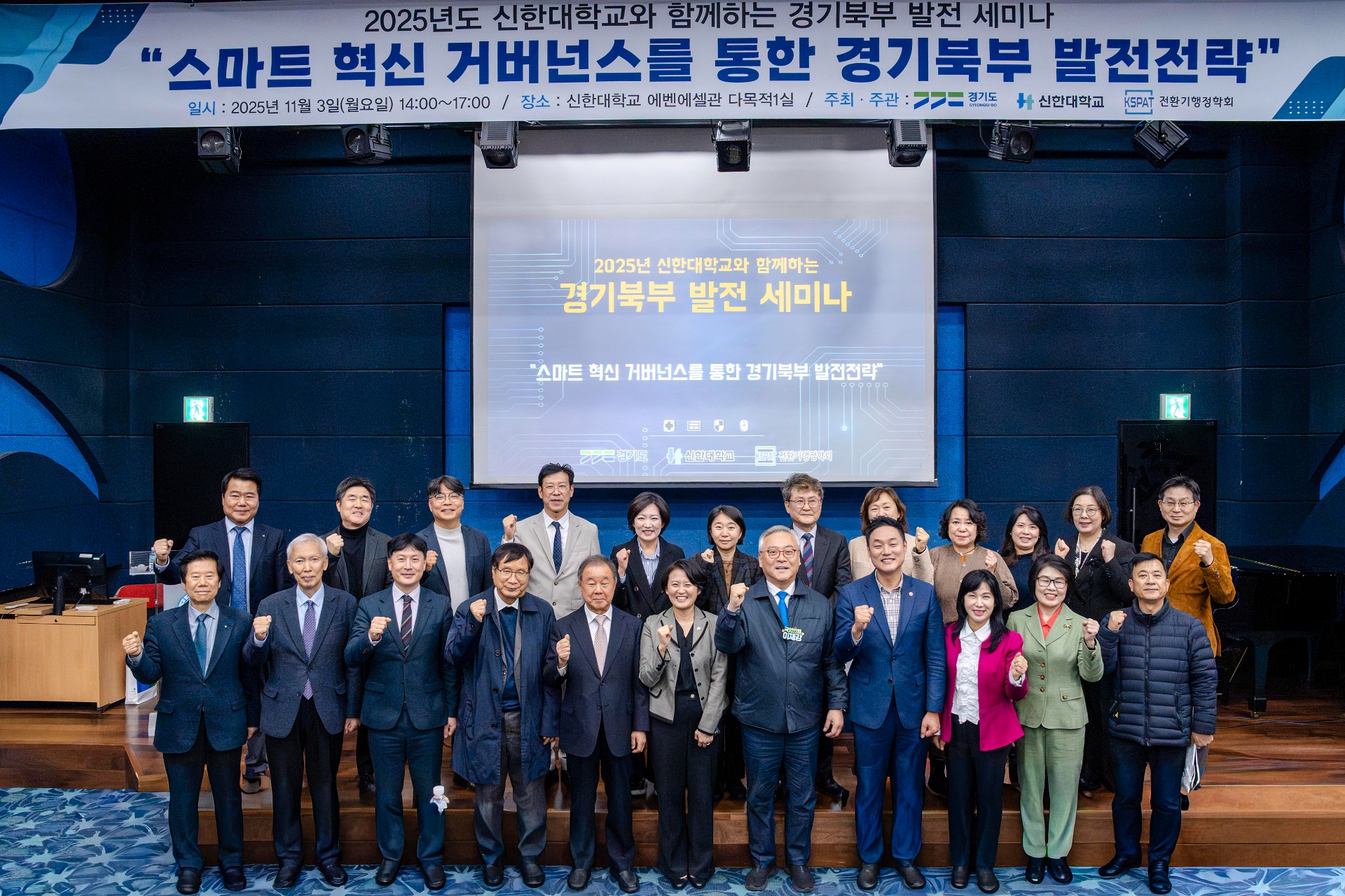 신한대학교(총장 강성종)와 경기도(도시자 김동연) 그리고 ()전환기행정학회(회장 심익섭)113() 오후 2, 의정부시 신한대학교 에벤에셀관 다목적1실에서 스마트 혁신 거버넌스를 통한 경기북부 발전전략을 주제로 “2025년 신한대학교와 함께하는 경기북부 발전 세미나를 공동 개최했다이번 세미나는 AI·ICT 기술 기반 돌봄혁신과 교육·산업·행정의 협력 거버넌스 구축을 통해 경기북부 지역의 불균형 해소와 지속가능한 발전 방향을 모색하기 위해 마련됐다.