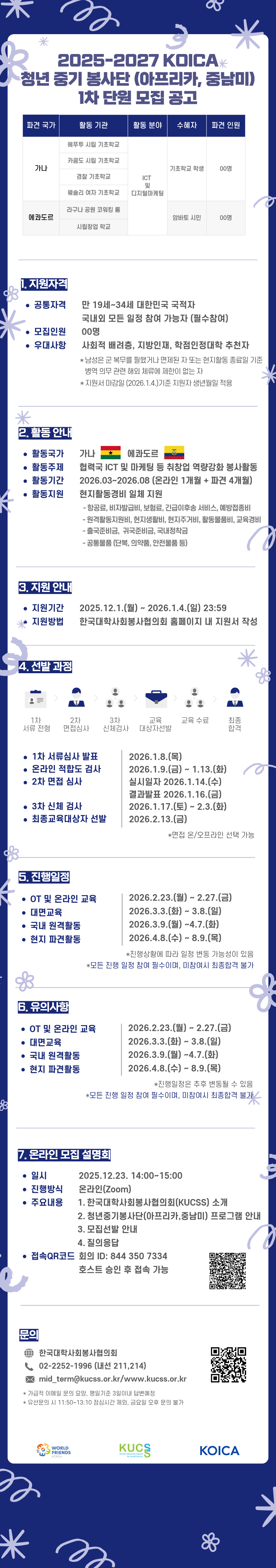 (KOICA) KOICA 청년중기봉사단(아프리카, 중남미) 1차 단원 모집 (~1/4)